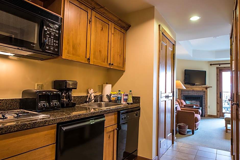 This spacious suite includes a separate living room, fully equipped kitchen, 2 bathrooms, spa bath in master bath and mountain or courtyard views.